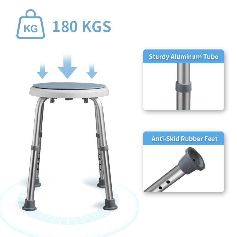 Smooth 360° Rotation: The core of our 360 swivel shower stool is a high-grade rotating disc that allows you to turn in any direction without lifting your feet, serving as an ideal rotating shower chair.