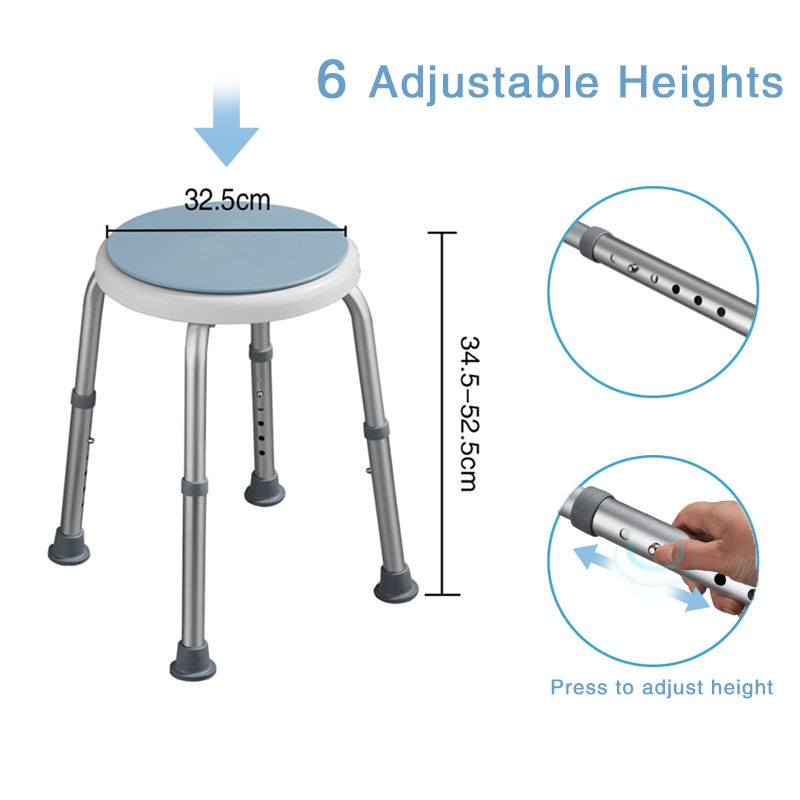 Adjustable Height Settings: This adjustable swivel bath stool can be customized to your preferred height, ensuring your feet are firmly planted for safety.