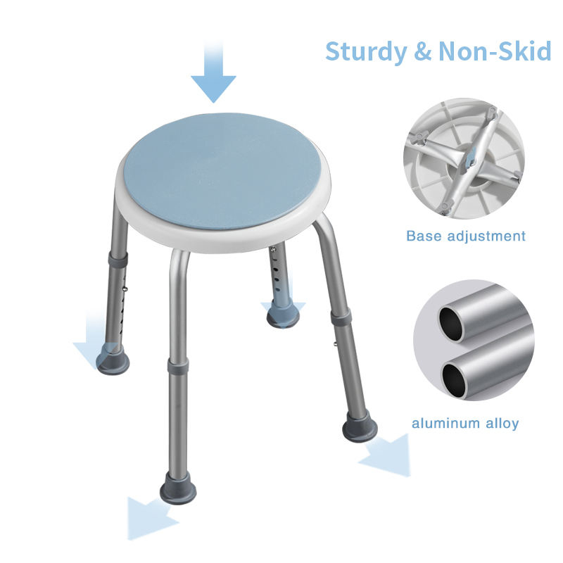 After hip or knee replacement, “pivoting” on one leg is a high-risk movement. A professional 360 swivel shower stool provides the necessary rotation within the seat itself, protecting your surgical site. As a dedicated mobility aid shower stool, it allows caregivers to rotate the patient effortlessly for thorough cleaning. Choosing our swivel seat bath stool means choosing a higher standard of care and a significantly lower risk of re-injury. Whether used as a rotating shower chair or a simple vanity stool, this device is a must-have for modern accessible living.
