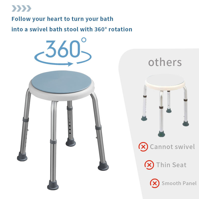 Traditional shower stools require you to twist your body, which can lead to slips or joint pain. Our 360 Swivel Shower Stool eliminates this risk by moving with you. As the premier rotating shower chair in 2026, it features a low-friction swivel mechanism that locks into place when needed but rotates smoothly for easy entry and exit. This swivel seat bath stool is specifically engineered for seniors and post-op patients who need a 360 degree rotating handicap seat to maintain their daily hygiene with dignity and ease. More Items: Elderly Bathroom Safety Products