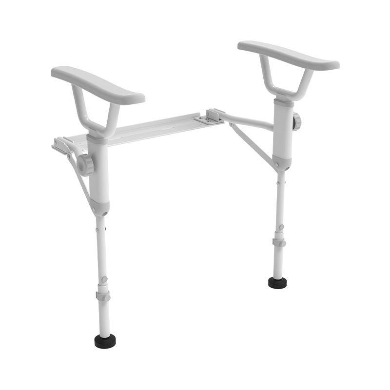 Reinforced Support Legs: These adjustable toilet grab bars with support legs feature non-slip rubber feet that anchor the frame to the floor, acting as a high-capacity bariatric toilet safety rail.