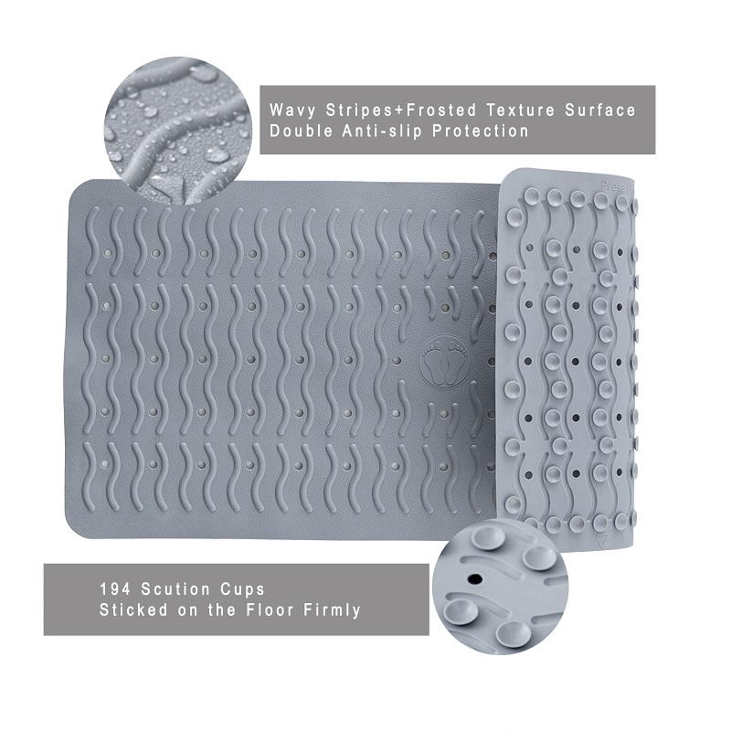 • Advanced Suction Grip: This suction cup bath mat for seniors features a specialized array of large vacuum cups that lock onto smooth surfaces, ensuring the mat stays in place even under heavy water flow.